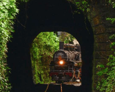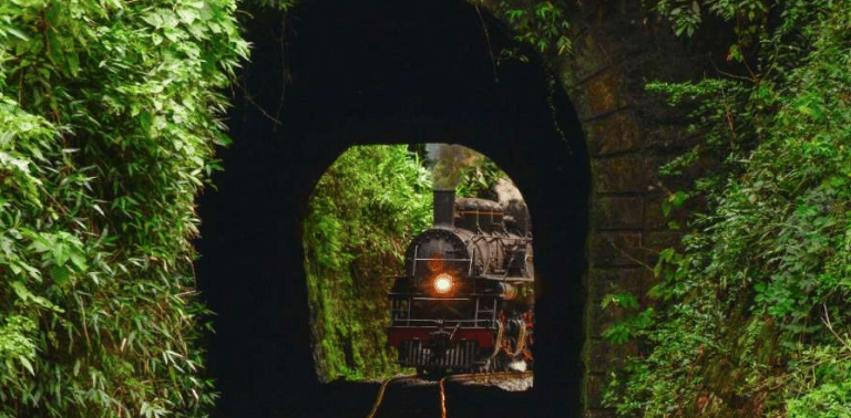 Atravesse túneis escavados na rocha sólida, onde o som do vapor ressoa e a história ganha vida.